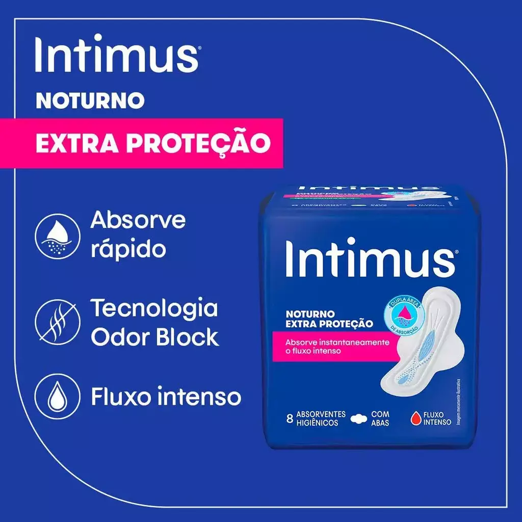 O Absorvente Intimus Noturno Suave com Abas (8 unidades) é um absorvente externo projetado para oferecer maior proteção durante a noite, especialmente em dias de fluxo intenso.