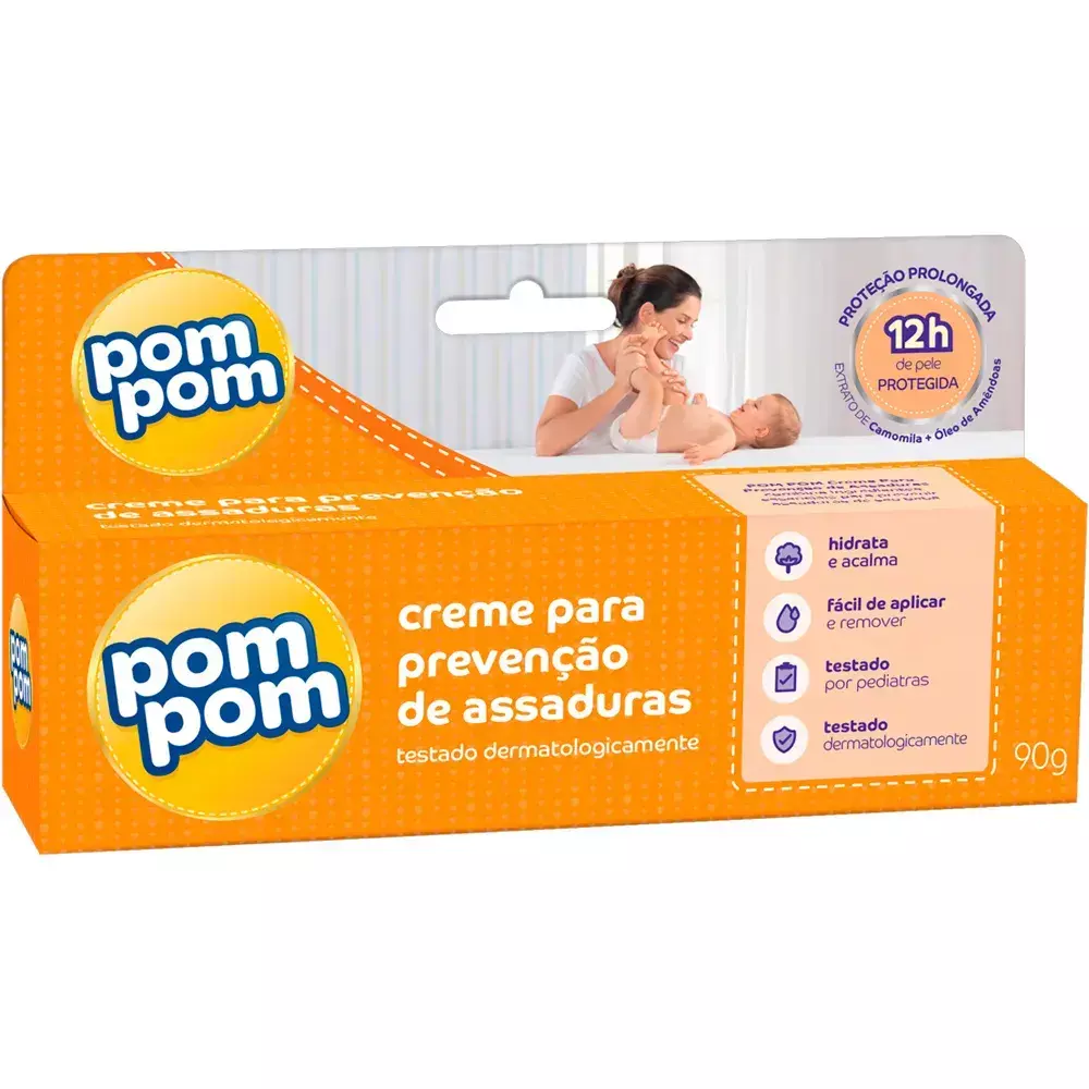 Creme para Prevenção de Assaduras Pom Pom Oferece uma super proteção e segurança à pele do bebê de até 12 horas. Como componentes os extratos de camomila e amêndoas que proporcionam hidratação e alivio de irritações à pele do seu bebê. Cuida delicadamente a parte mais sensível do seu filho inibindo o contato com a transpiração e líquidos causadores de irritações. Mantendo a pele sempre bem protegida por causa de sua camada protetora.