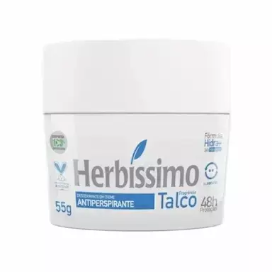 O Desodorante Herbíssimo Creme Unissex Perfumado é indicado para proteção contra o mau odor e a transpiração excessiva nas axilas de homens e mulheres. Sua fórmula não mancha nem deixa resíduos nas roupas, proporcionando uma sensação de frescor e bem-estar. Embalagem com 55g.