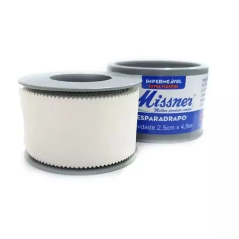 Esparadrapo Impermeável Missner 2,5cm x 4,5m é composto por tecido 100% algodão e uma camada superior impermeabilizante, que impede a entrada de água e contaminantes no ferimento.