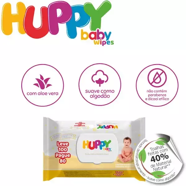 Elaboradas com ingredientes que hidratam a pele do bebê, as Toalhinhas Umedecidas Huppy Baby Wipes são resistentes, macias e eliminam delicadamente as impurezas, prevenindo o seu bebê contra assaduras.