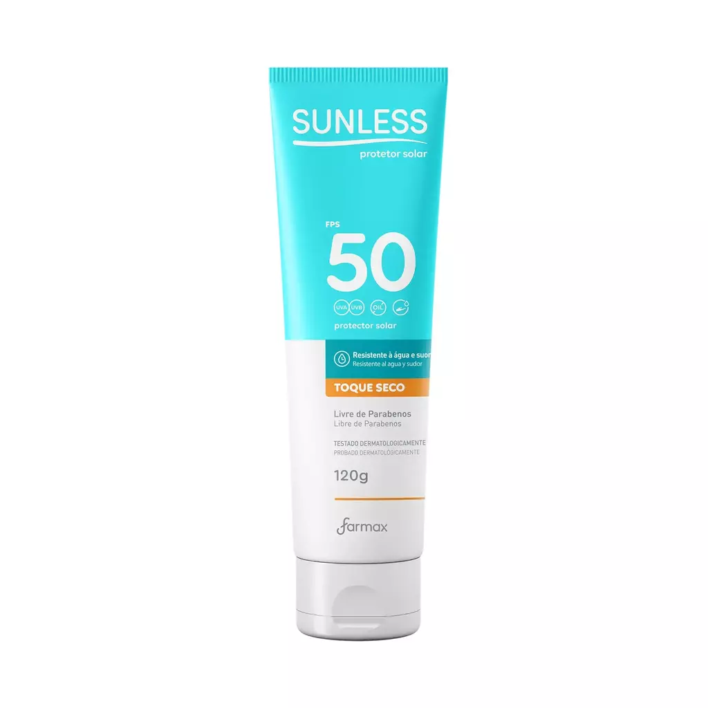 O <a class="SmjhRb bqYA2d" jsuid="BPetwe_n" role="link" tabindex="0" id="pvlink55PaaN_sCvfn1sQPwfiK2Qg_1" jsaction="click:&BPetwe_m|T2P31d" data-ved="2ahUKEwif_Mjak_6PAxX3s5UCHUG8IosQxa4PegQIAxAC" href="https://www.google.com/search?prds=pvt:hg,pvo:29,mid:576462848176749993,imageDocid:8960940288990357003,gpcid:5560466347007734975,headlineOfferDocid:4377982318838329624,catalogid:3119095933579144170,productDocid:9064748483016793197,rds:PC_12969177663775418546%7CPROD_PC_12969177663775418546&ibp=oshop&q=product&sa=X&ved=2ahUKEwif_Mjak_6PAxX3s5UCHUG8IosQxa4PegQIAxAC" style="text-decoration-thickness: 8%; text-decoration-style: dotted; -webkit-tap-highlight-color: #ffffff; text-underline-offset: 10%; outline: 0px;">Protetor Solar Sunless Toque Seco FPS 50 120g </a> é um produto da Farmax, formulado para oferecer alta proteção contra os raios UVA e UVB. Ele é oil-free, resistente à água e ao suor, e combate os radicais livres, prevenindo o envelhecimento precoce da pele.