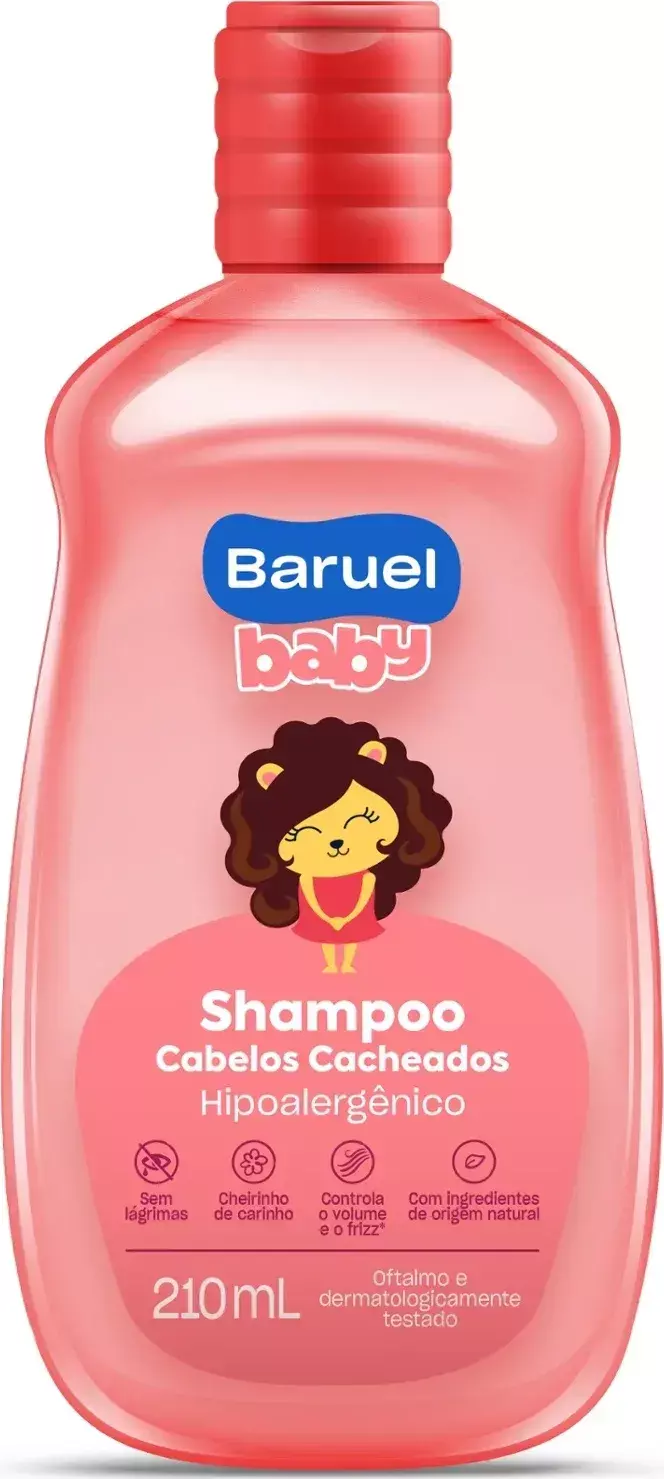 Shampoo Baruel Baby Cabelos Cacheados 210ml é um produto infantil hipoalergênico e vegano, desenvolvido para limpar suavemente os cabelos das crianças, ajudar a controlar o volume e o frizz, e definir os cachos.