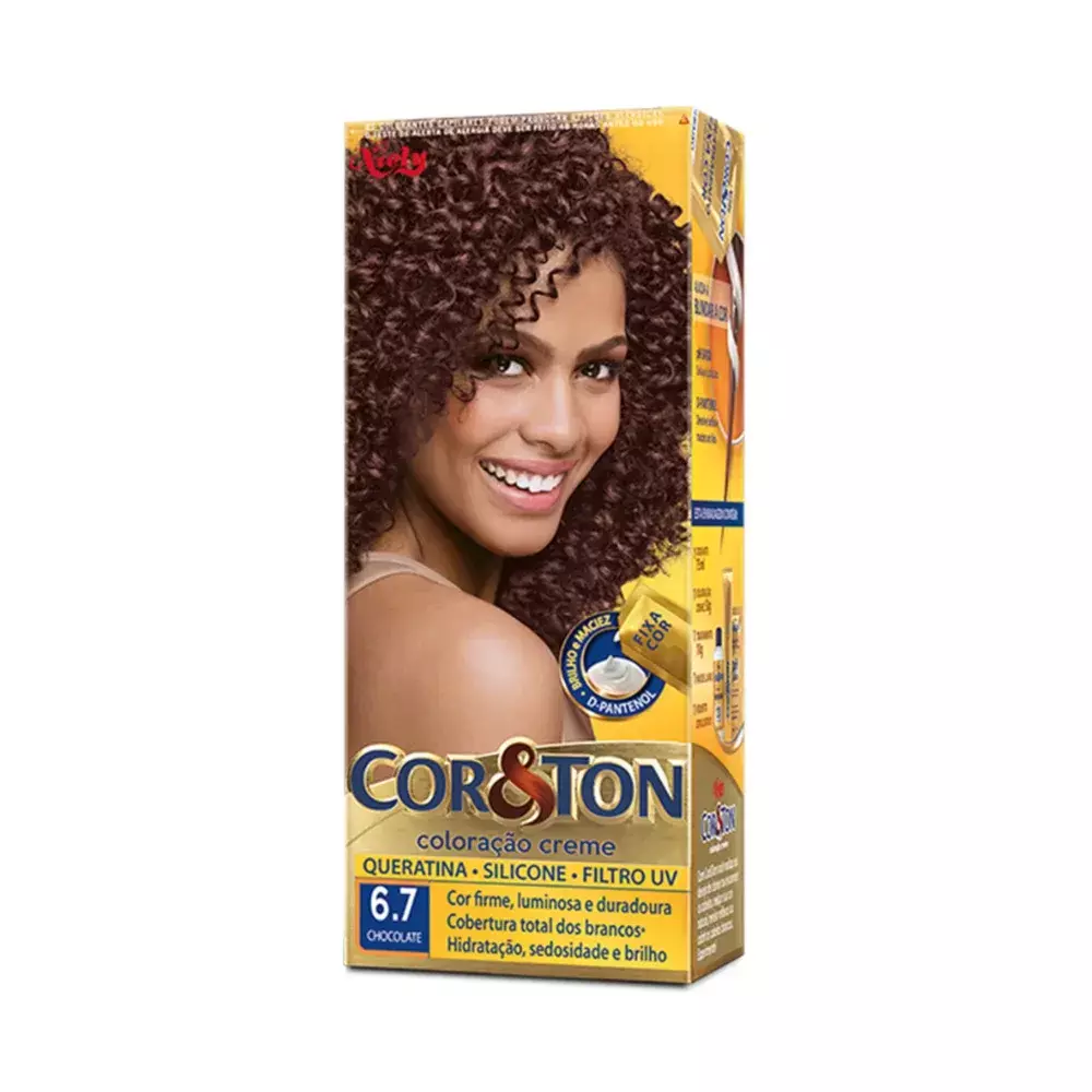 A Tintura COR&TON KIT 6.7 CHOCOLATE é uma coloração permanente, disponível em diferentes apresentações, como líquida, em creme e em pó. Ela oferece cobertura dos fios brancos e contém ingredientes que ajudam a tratar os cabelos durante o processo de coloração.